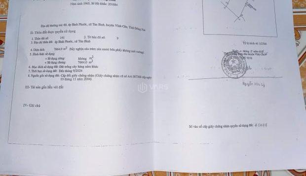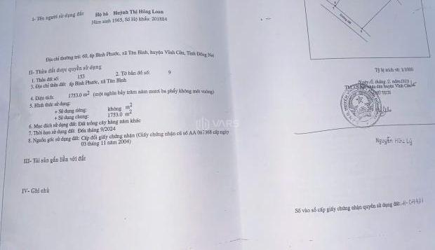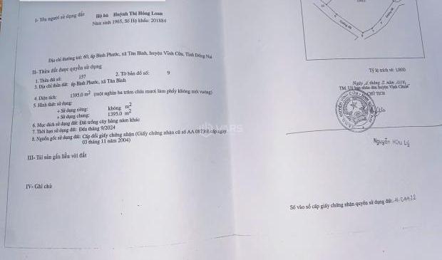 + Vị trí: Xã Tân Bình Xã Tân Bình, Huyện Vĩnh Cửu, Đồng Nai