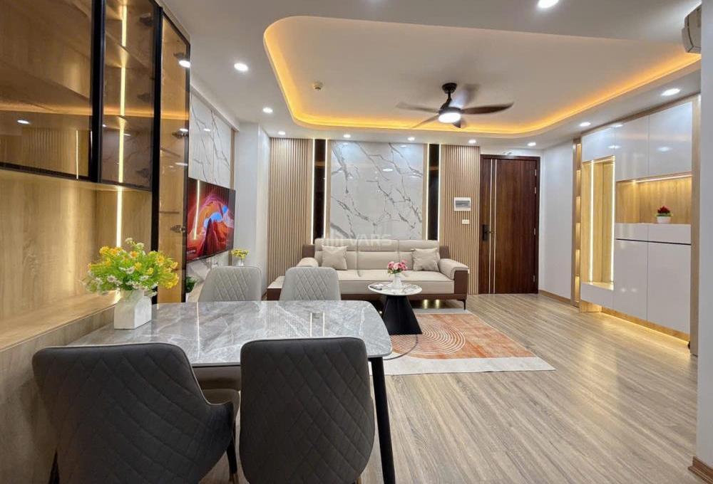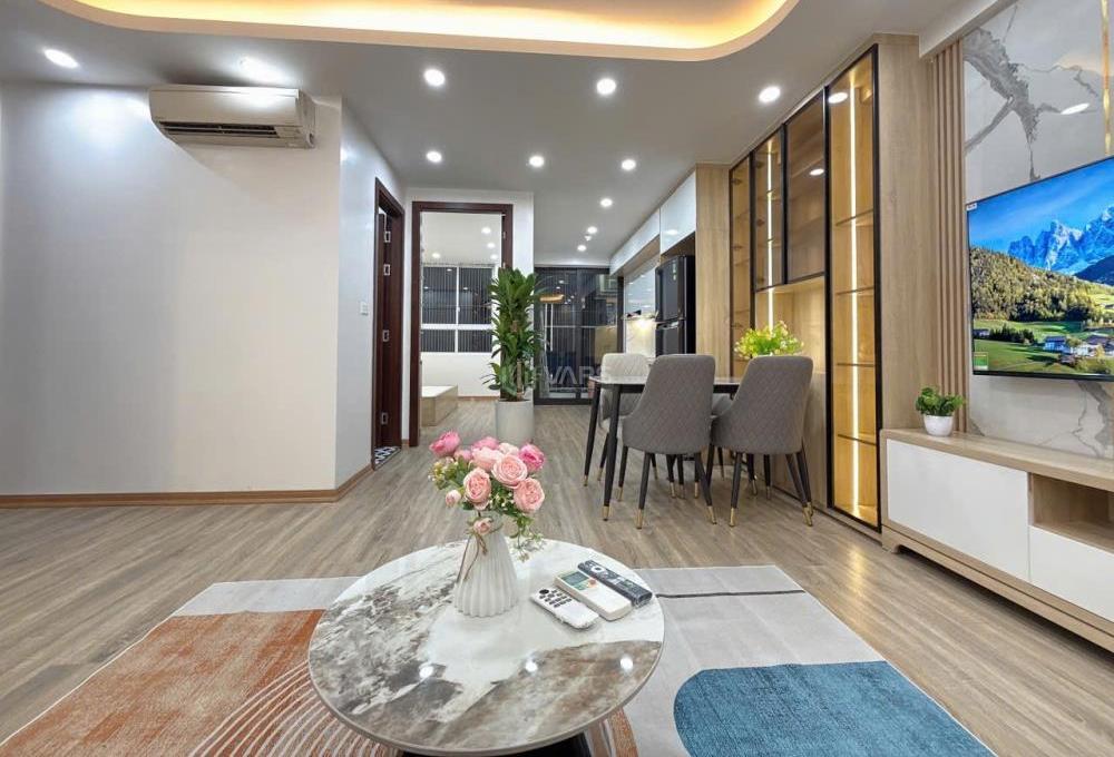 Nội thất căn hộ đầy đủ mới 100% bao gồm: Sàn gỗ,trần thạch cao,bàn ghế 🏢 sofa,tivi,tủ lạnh,điều hòa,nóng lạnh,khu vực bếp đầy đủ,bàn ghế ăn,giường,tủ quần áo💥.