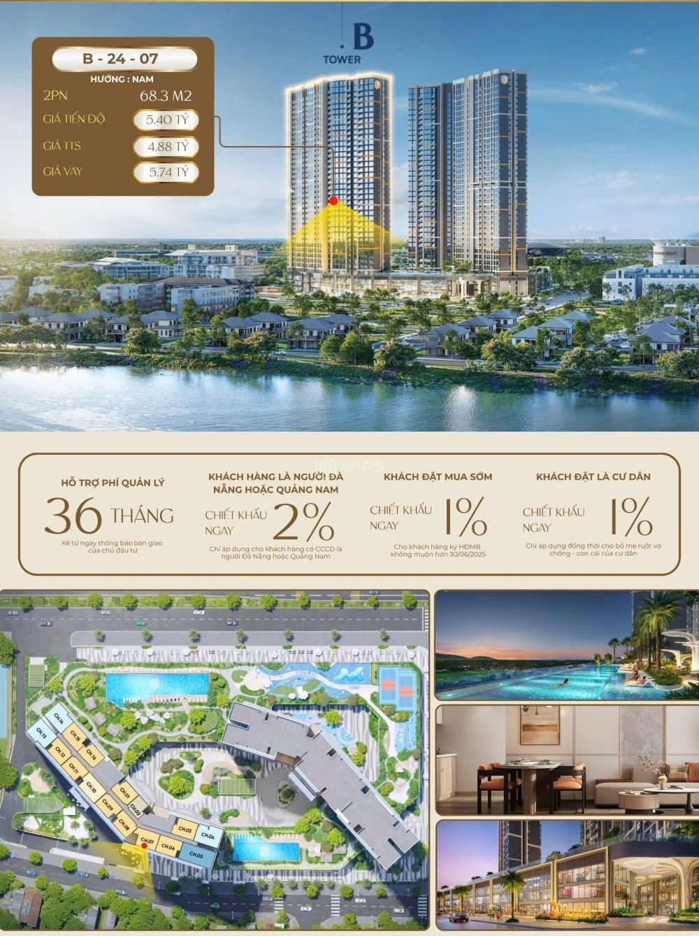 🔥 "BEST VIEW – BEST PRICE” Masteri Rivera Danang – Căn 2PN CHỈ 4,883 TỶ – KHÓ CÓ LẦN 2! 📐 Diện tích 68m² | 2PN – 2WC – thiết kế vuông vức, tối ưu công năng 🧭 Hướng Bắc – mát mẻ, thoáng đãng 🏊♂️ View trực diện bể bơi nội khu – thư giãn mỗi ngày, không bị chắn ✅ Tầng thấp – vừa riêng tư vừa thuận tiện di chuyển ✅ Phù hợp cả an cư lâu dài lẫn đầu tư cho thuê chuyên 🏘️ gia, khách nước ngoài ✅ Pháp lý sở hữu lâu dài – dòng sản phẩm cao cấp ngày càng khan hiếm tại Đà Nẵng 🎯 Tiềm năng tăng giá tốt – hưởng lợi từ đà phát triển mạnh mẽ của khu trung tâm ven sông 🎁 Ưu đãi tài chính linh hoạt: – Lãi suất 0% – Ân hạn lãi và gốc 12 tới 18 tháng sau bàn giao – Chiết khấu đến 18% – Tặng 3 năm phí quản lý 🚨 HÀNG HIẾM – VIEW ĐẸP – PHÁP LÝ CHUẨN Liên hệ 09626***** 09626*****💥