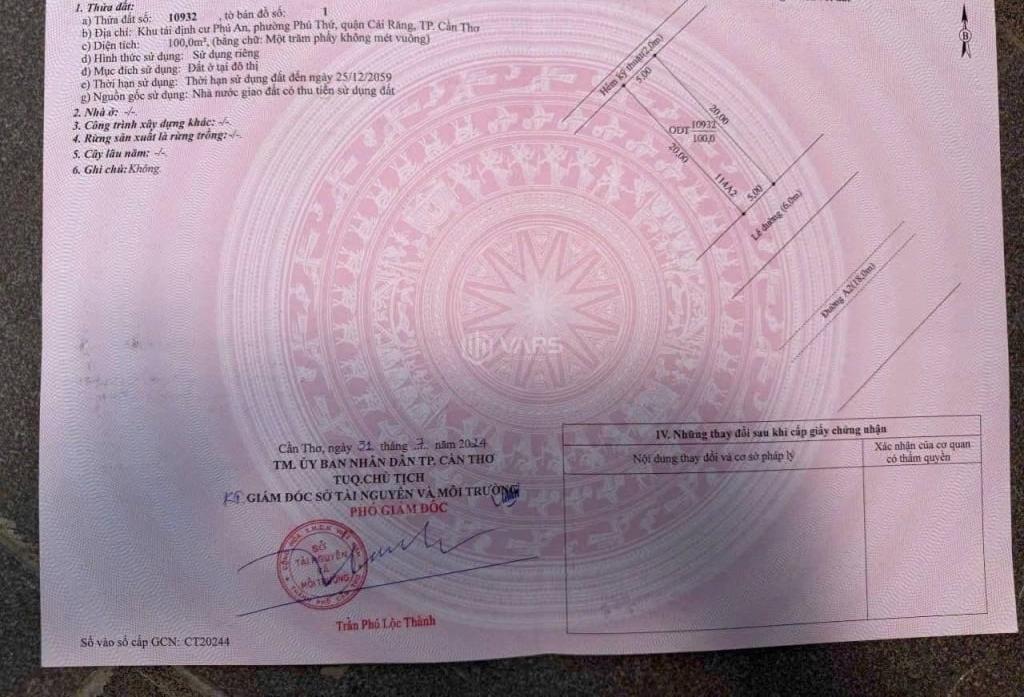 💥 Chủ cần bán Đất nền Dự án khu vực Phường Phú Thứ, Quận Cái Răng, Cần Thơ.