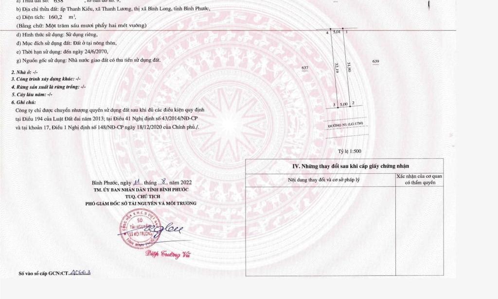 + Vị trí: Xã Thanh Lương, Thị xã Bình Long, Bình Phước