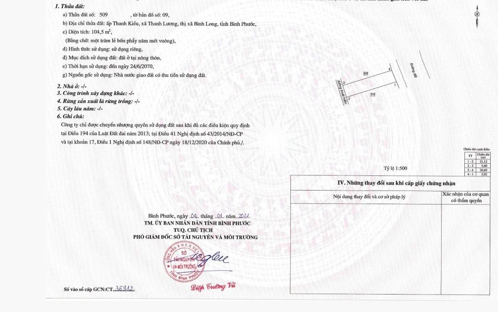 + Vị trí: Xã Thanh Lương, Thị xã Bình Long, Bình Phước