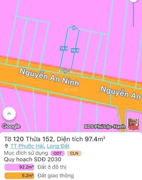 💥 Đất nền riêng lẻ khu vực Đường Nguyễn An Ninh, Thị trấn Phước Hải, Huyện Đất Đỏ, Bà Rịa Vũng Tàu.