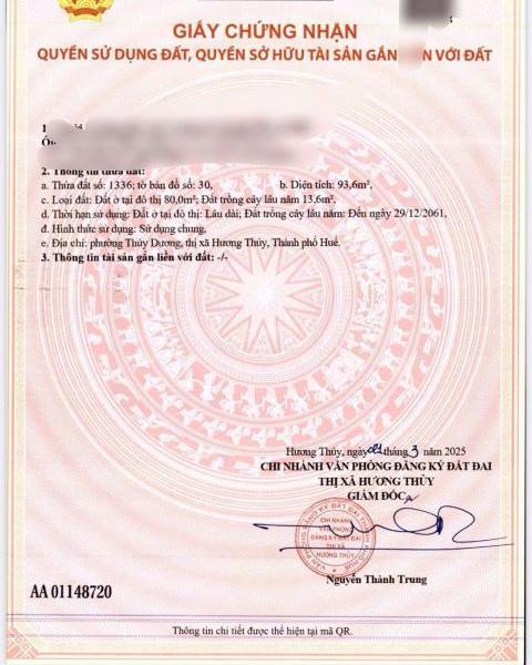 + Vị trí: Đường Phùng Lưu, Phường Thủy Dương, Thị xã Hương Thủy, Huế