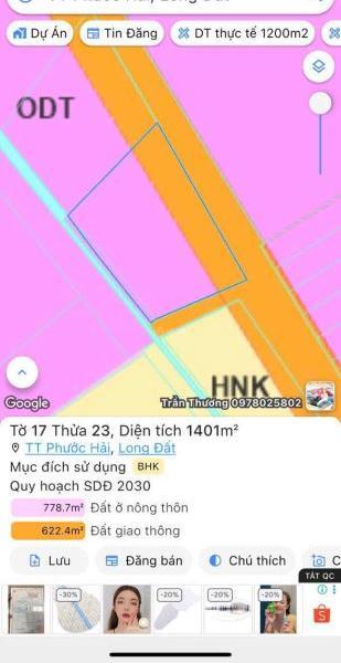 💥 Đất nền riêng lẻ khu vực Đường Phước Hưng, Thị trấn Phước Hải, Huyện Đất Đỏ, Bà Rịa Vũng Tàu.