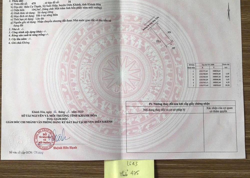 💥 Đất nền riêng lẻ khu vực Kđt Mới Nam Sông Cái, Xã Suối Hiệp, Huyện Diên Khánh, Khánh Hòa.