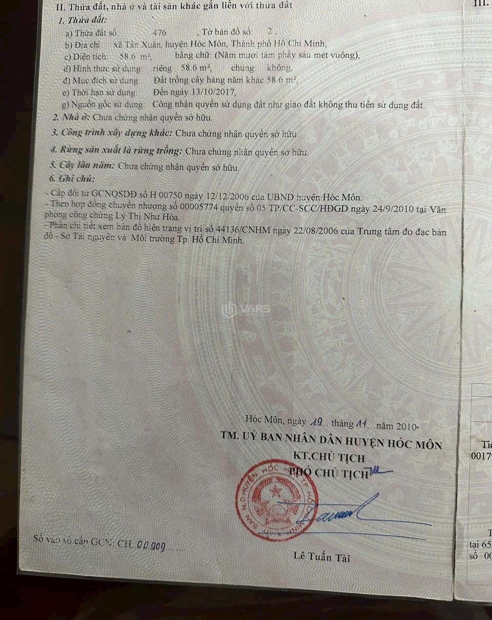 + Vị trí: Lê Thị Hà, Xã Tân Xuân, Huyện Hóc Môn, Hồ Chí Minh