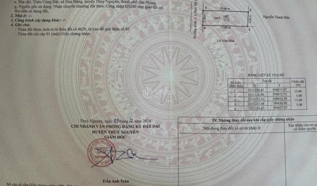 + Vị trí: Đường Liên Thôn, Xã Hoa Động, Huyện Thủy Nguyên, Hải Phòng