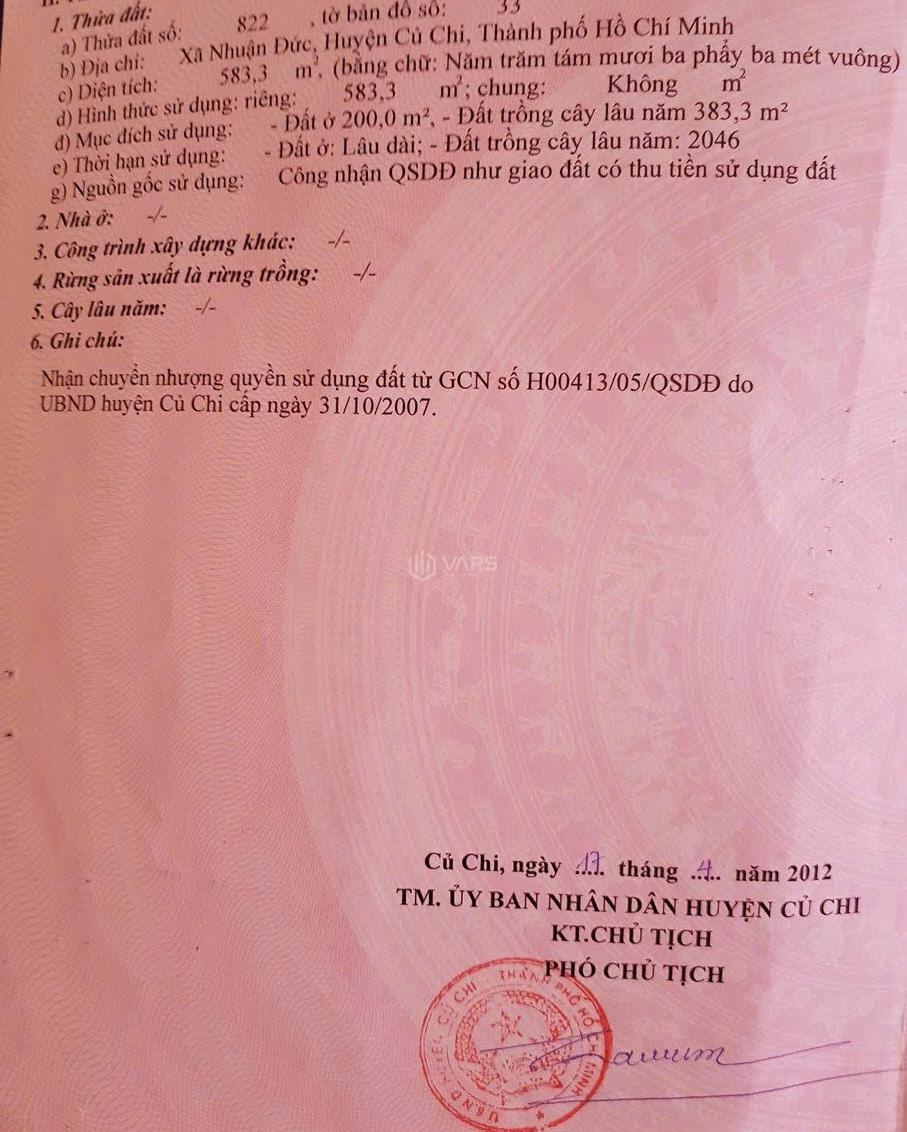💥 Đất nền riêng lẻ khu vực Xã Nhuận Đức, Huyện Củ Chi, Hồ Chí Minh.