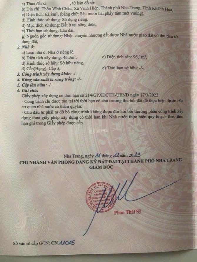 + Vị trí: Xã Vĩnh Hiệp, Thành phố Nha Trang, Khánh Hòa