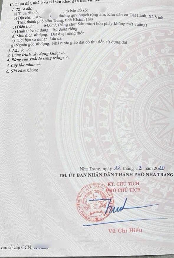 💥 Đất nền riêng lẻ khu vực Xã Vĩnh Thái, Thành phố Nha Trang, Khánh Hòa.