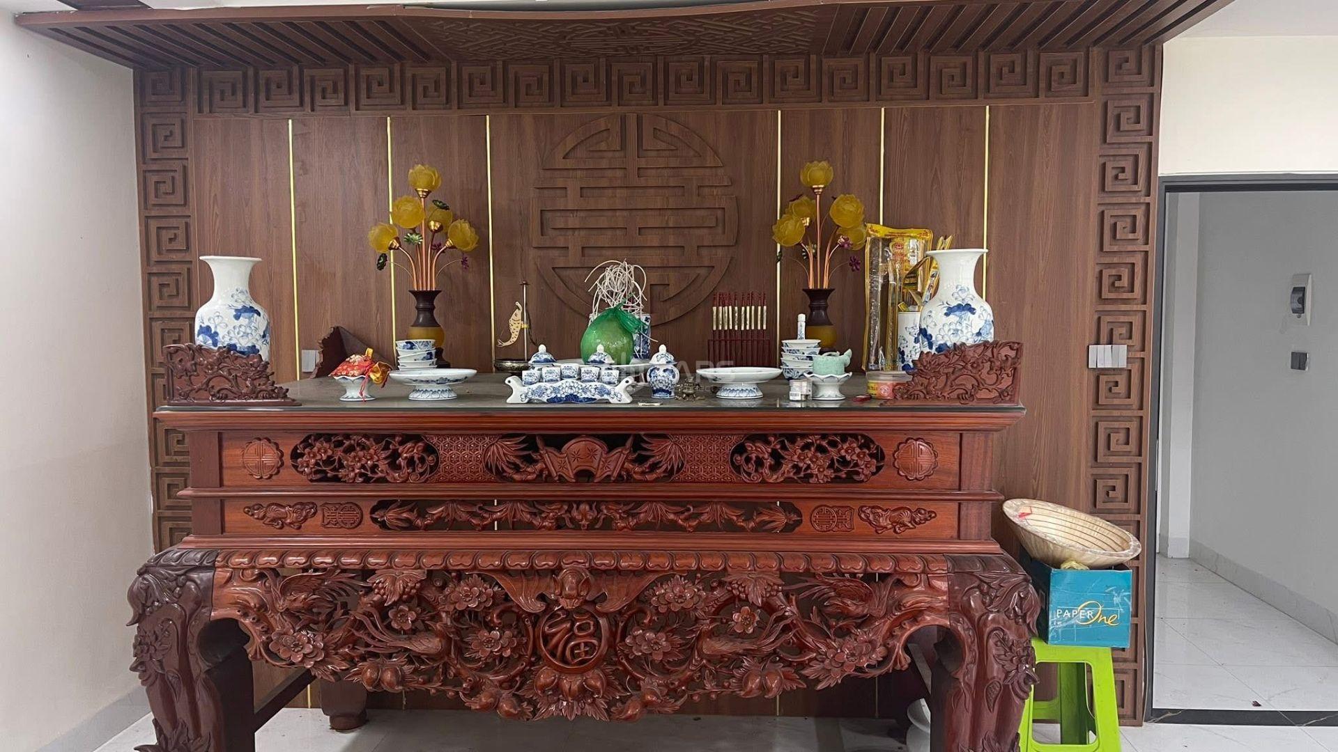 - Tầng 3: Sân trước cây cảnh viu mặt nhà, Phòng thờ, Phòng để đồ, sân phơi sau nhà.