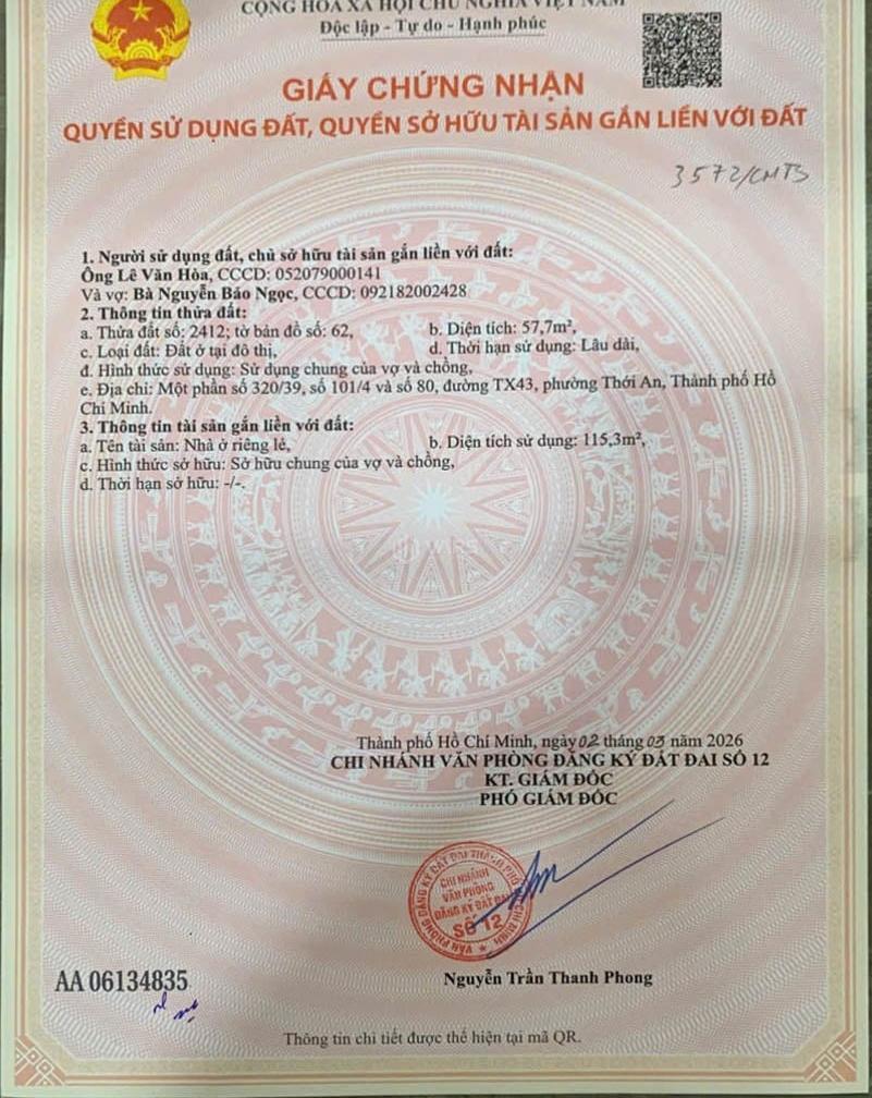 💥 Cần bán Nhà mặt phố khu vực Phường Thạnh Xuân, Quận 12, Hồ Chí Minh.