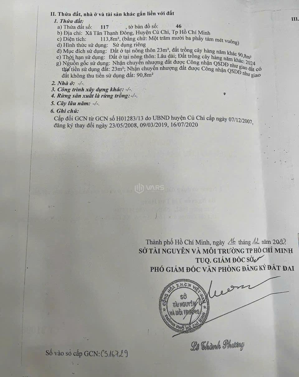 + Vị trí: Xã Tân Thạnh Đông, Huyện Củ Chi, Hồ Chí Minh