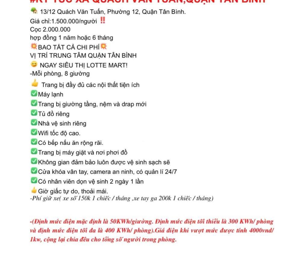 💥 Cần cho thuê Nhà trọ, phòng trọ khu vực Quách Văn Tuấn, Phường 12, Quận Tân Bình, Hồ Chí Minh.